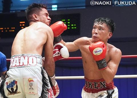 セミファイナル、110ポンド契約10回戦はWBA&WBC世界ライトフライ級2位、WBOでも3位にランクされる前WBO同級王者の岩田翔吉がWBOミニマム級12位、元WBOラテン・ミニマム級王者でもあるエドウィン・カノ(メキシコ)に7ラウンド3分ジャストのKO勝利をおさめています。岩田は15勝12KO2敗とし約7ヶ月振りの復帰を見事に飾っています。一方、初来日のカノ選手は13勝4KO4敗1分です。