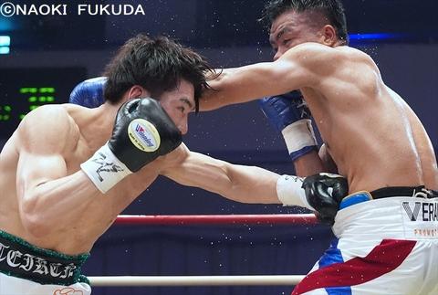 第4試合、日本スーパーライト級王座決定戦は同級1位の川村英吉(角海老宝石)が同級2位の元日本同級王者、藤田炎村(横浜光)に10回判定勝利、川村選手が新王者となっています(2対1/96-93、97-92:川村、95-94:藤田)。川村選手は7勝4KO1分、藤田選手は13勝11KO4敗とし王座返り咲きは成りませんでした。