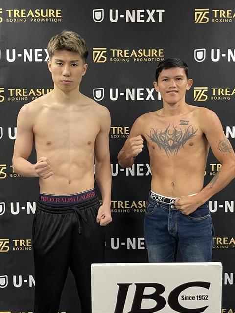 OPBF東洋太平洋でも9位につける福井は200グラムアンダーの55.1Kg(121.5ポンド)。一方、初来日となるフィリピン・フェザー級14位、ジョニベルト・バンタイ(フィリピン/10戦9勝1KO1敗)選手は54.5Kg(120.25ポンド)でクリアしています。