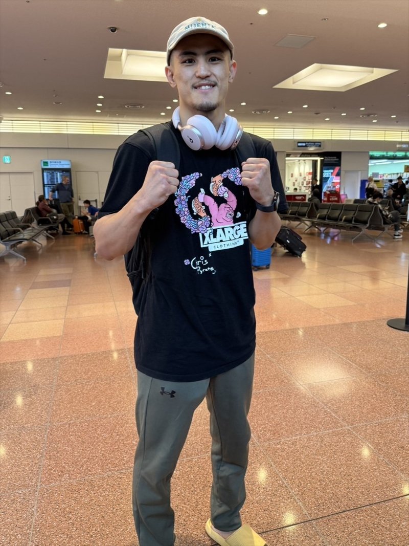 およそ1週間後に迫った4月11日(土)開催、『 PRIME VIDEO BOXING 15 』においてWBC世界バンタム級18位のホセ・カルデロン(メキシコ)と対するIBF世界バンタム級5位、秋次克真(米国/日本/14戦全勝4KO)選手が3日午後、無事に来日しました。大阪・興国高校でボクシング部に在籍後、単身渡米し18年12月に米国カリフォルニア州でプロデビュー。これまでの14戦全てをアメリカのリングで戦い、全勝でのし上がってきた異色のボクサーがプロの世界でいよいよ日本初登場です。